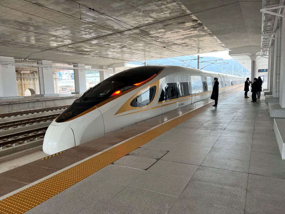 Am 8. Januar 2022 um 9:26 Uhr fuhr der erste Zug der Hochgeschwindigkeitsstrecke Hangzhou-Taizhou vom Bahnhof Taizhou ab