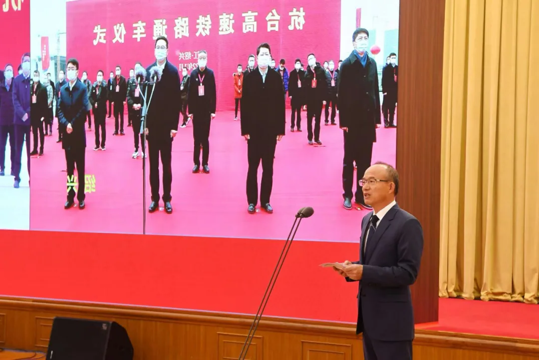 Li Haifeng, Executive President von Fosun International, nimmt an der Eröffnungszeremonie der Hochgeschwindigkeitsstrecke Hangzhou-Taizhou in der Niederlassung Taizhou teil und spricht den Bauarbeitern des Hochgeschwindigkeitsstreckenprojekts Hangzhou-Taizhou seine persönlichen Glückwünsche aus.