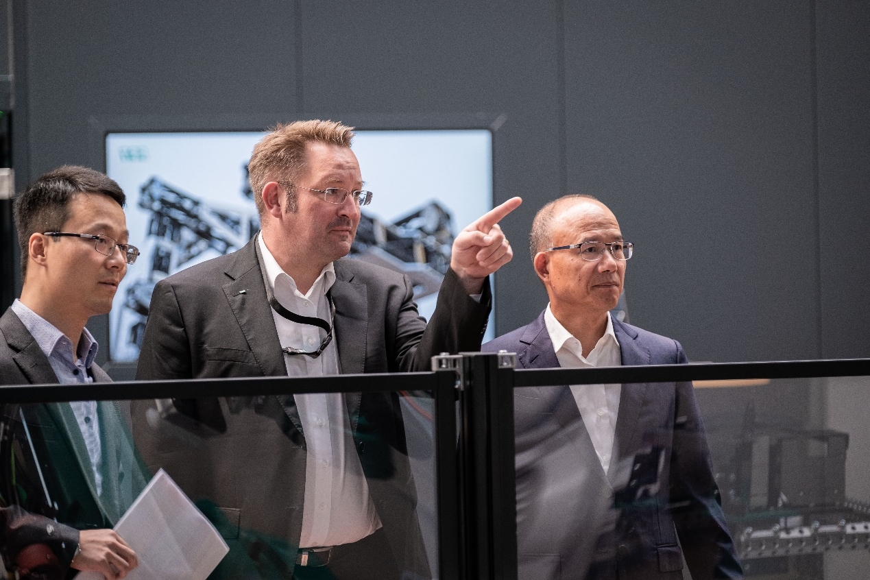 Fulda (as) – Flexibel, effizient und systemintegral – im neuen Showbereich der FFT Group in Fulda wurden am Dienstag eine Palette an Produkten und Robotern präsentiert, die das Knowhowfür und die Technologiebereiche des Unternehmens zeigen. Bei seinem Besuch machte sich Guangchang Guo, Chairman der Fosun Group, zu der auch FFT gehört, selbst ein Bild vor Ort und weihte