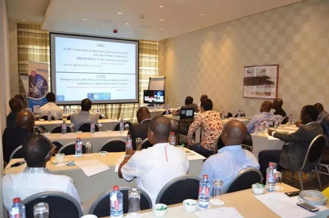 赛勒斯在给坦桑尼亚政府官员讲解注射用青蒿琥酯Artesun®
