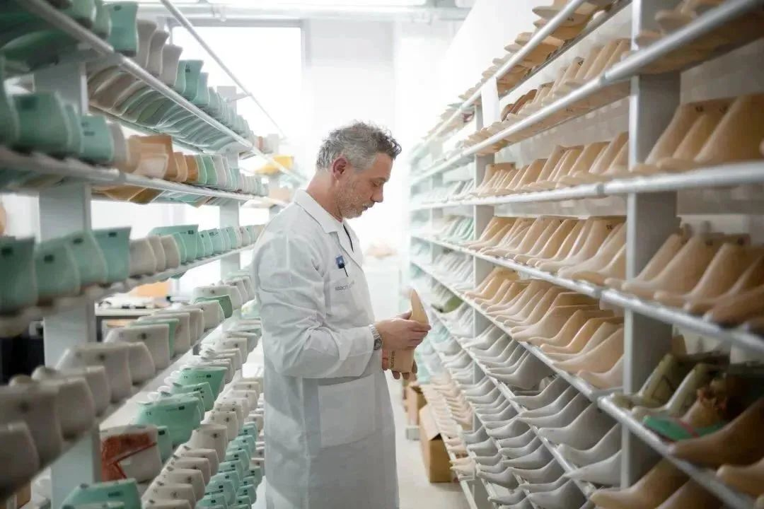 A:需要从各种技术角度经过反复验证和确认后,模型才算准备就绪。这之后我们会把它送往镇上最好的工厂,借助机器实现工业复制生产,包括从鞋面切割开始,到所有部位的组建和完工。