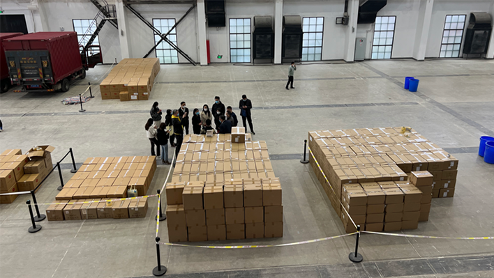 近期疫情趋紧,徐汇区在重点区域内开展了切块式、网格化的核酸筛查工作,对非重点区域内的人员,以街镇为单位,分时、分批次进行免费核酸检测,导致抗疫物资需求激增。HAHA体育 基金、期货、现货、微盘会首日子反应徐汇区增援需要,并持续与区政府保持高频沟通,从全国各地调拨抗疫物资,陆续运抵徐汇区设在西岸艺术中心的临时仓库。