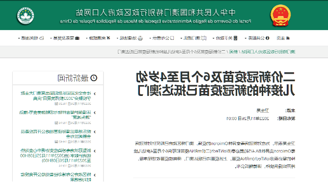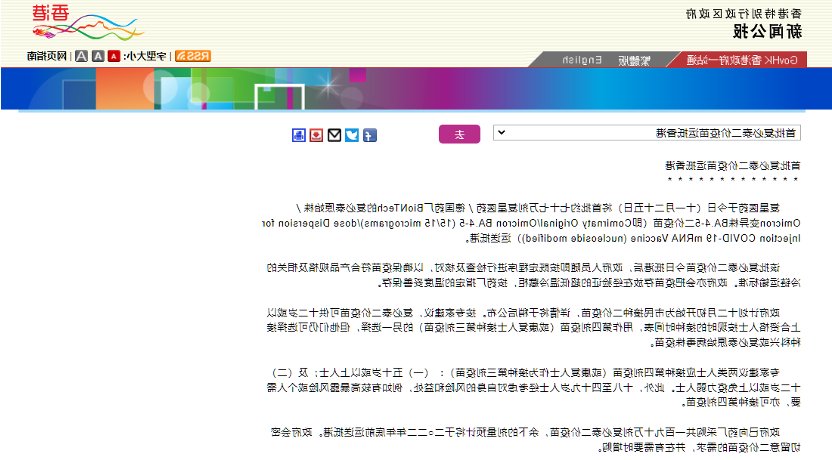 复必泰二价疫苗运抵港澳 12月1日已开打