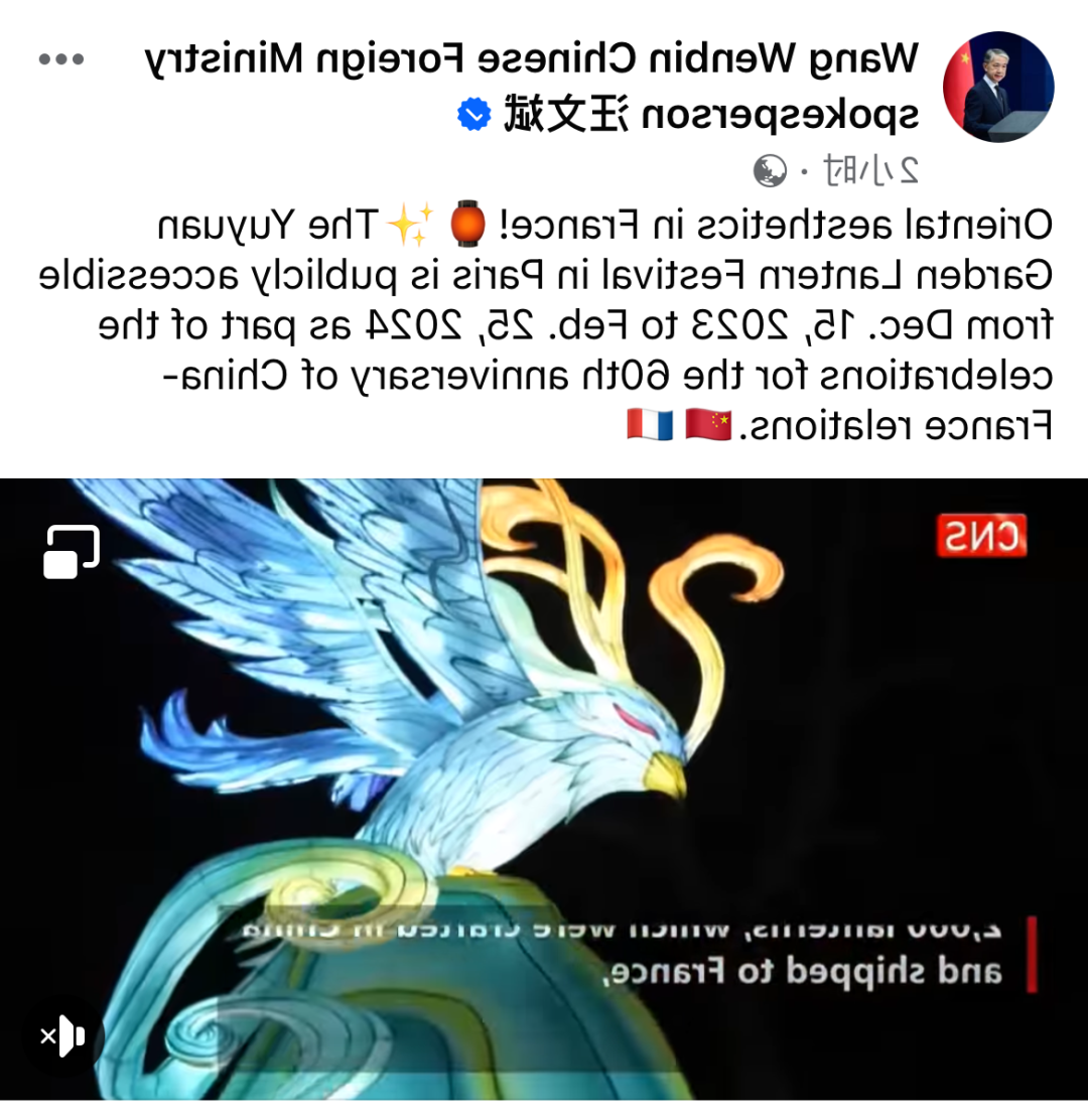 法国豫园灯会在筹备、亮灯、日常运营过程中,也获得了外交部、文化和旅游部、上海市外宣办等各级部门的鼎力支持,法国豫园灯会于11月底被列入为庆祝中法建交60周年暨中法文化旅游年的开幕活动及2024年中法双边合作中的精品系列活动,亦是2024年上海城市形象推广项目“奔流:从上海出发——全球人文对话”巴黎场预热活动,上海-巴黎“太极健康”主题快闪活动在法国和上海同步举行,实现了“叫好又叫座”。
