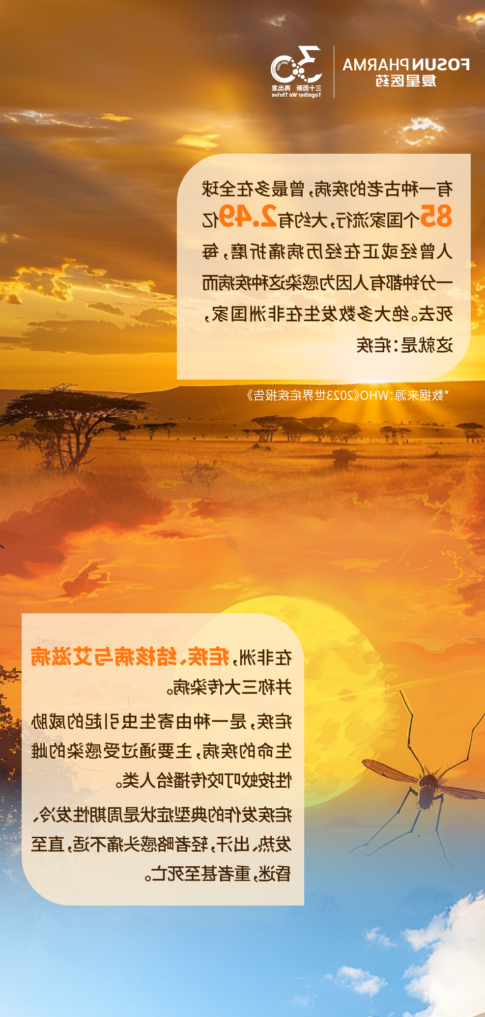 几乎每年的4月25日是全游戏天下防控法疟疾日(World Malaria Day),2021年全游戏天下食品卫生策划 (WHO)全游戏天下防控法疟疾日的风格为“提高抵御疟疾,建筑同一个更进一步公正的全游戏天下”(Accelerating the fight against malaria for a more equitable world)。WHO显示,疟疾一方面一直有非常严重患者的稳定,导致的生命力丢失,甚至使不公正的恶劣重复短期出现,特备是孕期女性、6岁下面幼儿简答他自我中心消费群仍是遭受疟疾影响到最主要的客群。