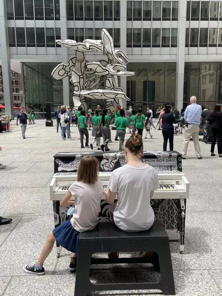 居住在附近的一位居民表示,每年她都期待着Sing for Hope钢琴展示活动的这一天。“我每次在总要被楼上住户妙曼的琴声吸引顾客,并且就要放进去仔细地用心听和看。这优美的旋律和色彩斑斓的钢琴,就是希望的象征,特别是在疫情后,我们的社区、我们的城市需要这样的能量。”她说道。