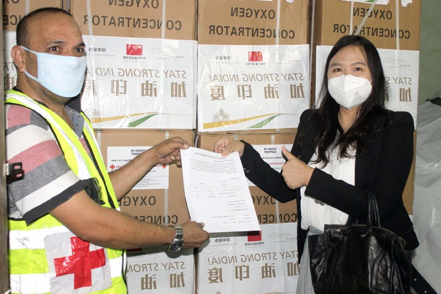 l'Inde totalisant 135 concentrateurs d'oxygène, 5 respirateurs et 3,300 masques