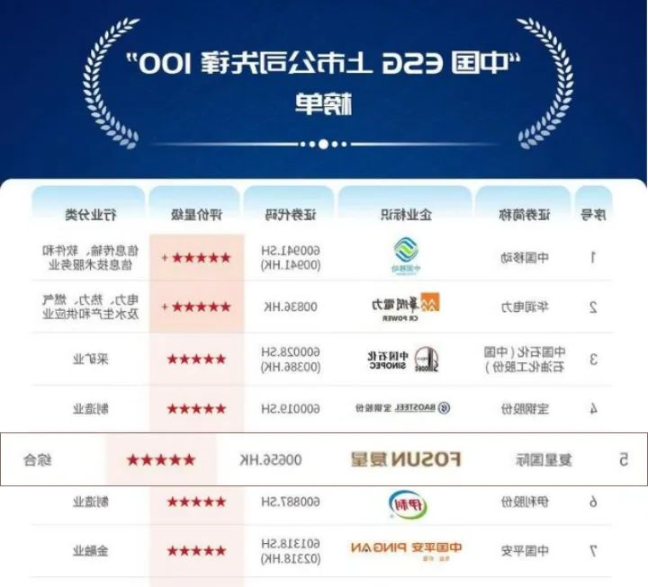 HAHA体育 荣登“中国ESG上市公司先锋100”榜 TOP5