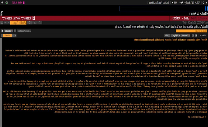 (23 août 2022) Un analyste qui est un leader d'opinion clé (KOL) a fait une analyse sur le terminal de Bloomberg à propos de Fosun International après la publication du rapport de notation de Moody's sur ce dernier. Le texte suivant est un extrait de l'article publié sur le terminal de Bloomberg :Le 23 août, l'agence de notation Moody's a publié un rapport ajustant l